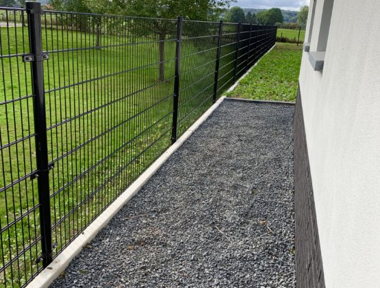 De matten worden rechtop geplaatst tussen metalen palen die afgewerkt zijn in dezelfde kleur poedercoating, zodat alles één geheel vormt. U heeft de keuze uit tussenpalen, hoekpalen en eindpalen, en kan het geheel vervolledigen met een enkele of dubbele poort met hoogwaardig slot. De palen worden ongeveer 80 cm diep in de grond verankerd. Bij een minder stevige ondergrond is het aan te raden om beton te storten of gebruik te maken van betonpoeren. Een staafmat van dik staaldraad kan zwaar uitvallen, dus zorg altijd voor een degelijke verankering.